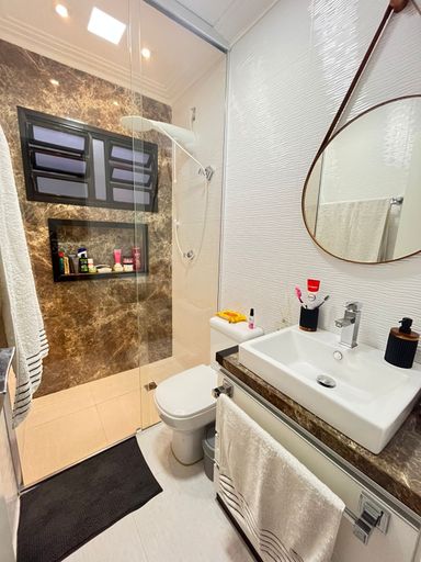Este belíssimo sobrado une modernidade, funcionalidade e aconchego em cada detalhe. São 3 dormitórios, sendo 2 suítes (uma delas com varanda) e um dos dormitórios transformado em um amplo closet, perfeito para quem valoriza praticidade e organização.